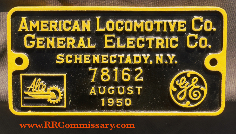 Welcome to The Railroad Commissary authentic locomotive builder's plate catalog.